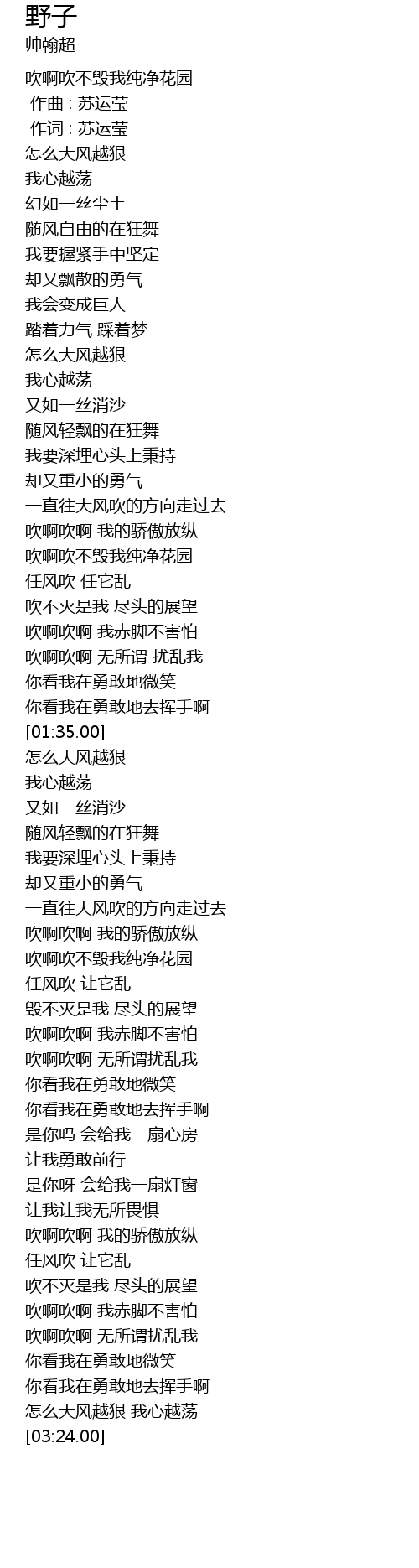 | [00:01.00] | 作词 : 苏运莹 |