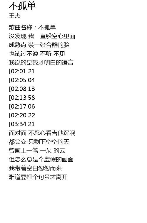 | [00:23.55] | 歌曲名称:不孤单 |