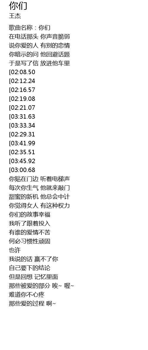 | [01:16.92][02:35.51][03:43.96] | 不就是怀疑嫉妒 |