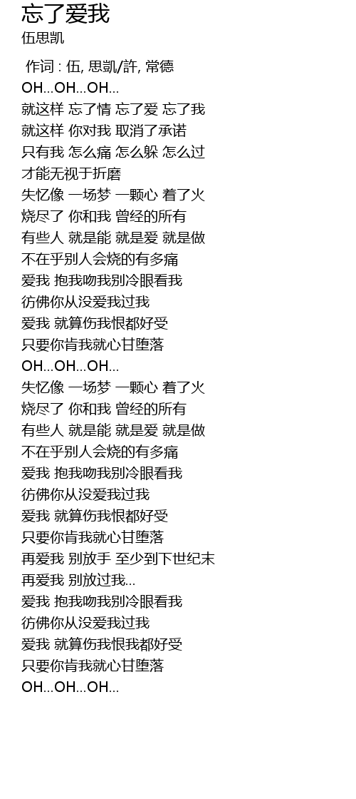 | [00:42.83] | 就这样 忘了情 忘了爱 忘了我 |