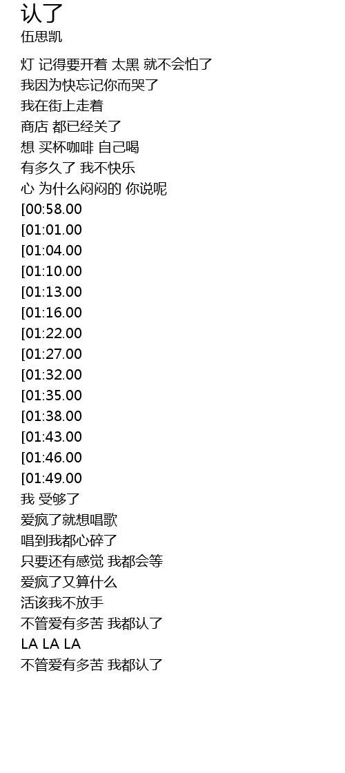 | [03:10.00][01:49.00] | 不管爱有多苦 我都认了 |