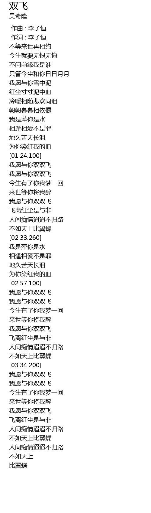 | [03:01.870] | wo yuan yu ni shuang shuang fei |