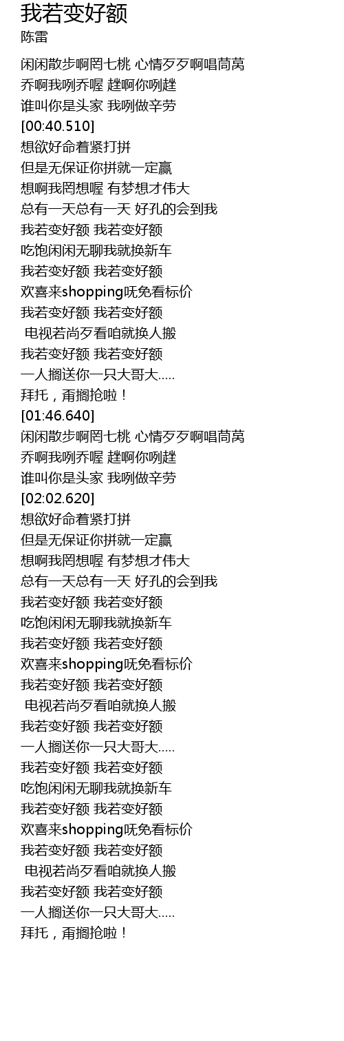 | [02:18.630] | 我若变好额 我若变好额 |