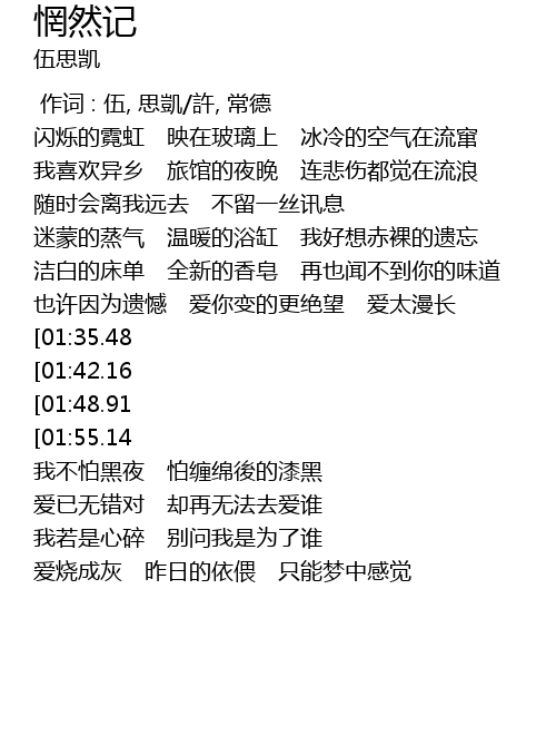 | [00:00.00] | 作词 : 伍, 思凱/許, 常德 |