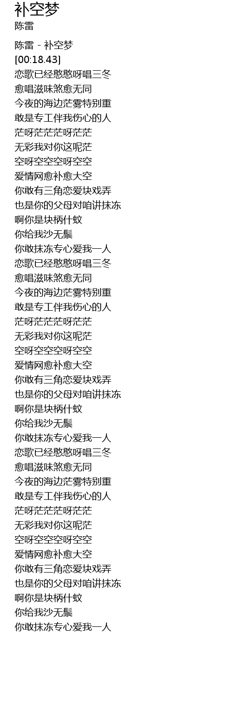| [00:00.00] | chén léi bǔ kōng mèng |