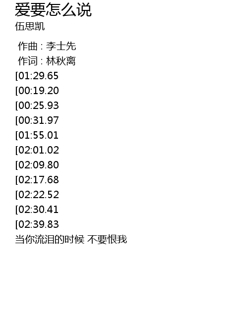 | [03:19.71][02:09.80][00:50.26] | gao su wo ai yao zen me shuo ai yao zen me zuo |