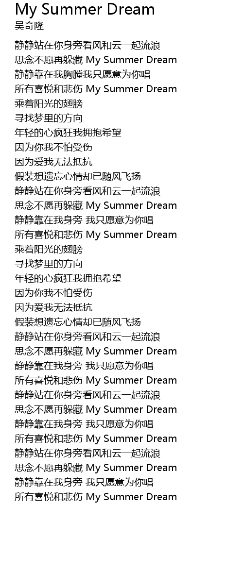 | [00:19.810] | sī niàn bù yuàn zài duǒ cáng My Summer Dream |