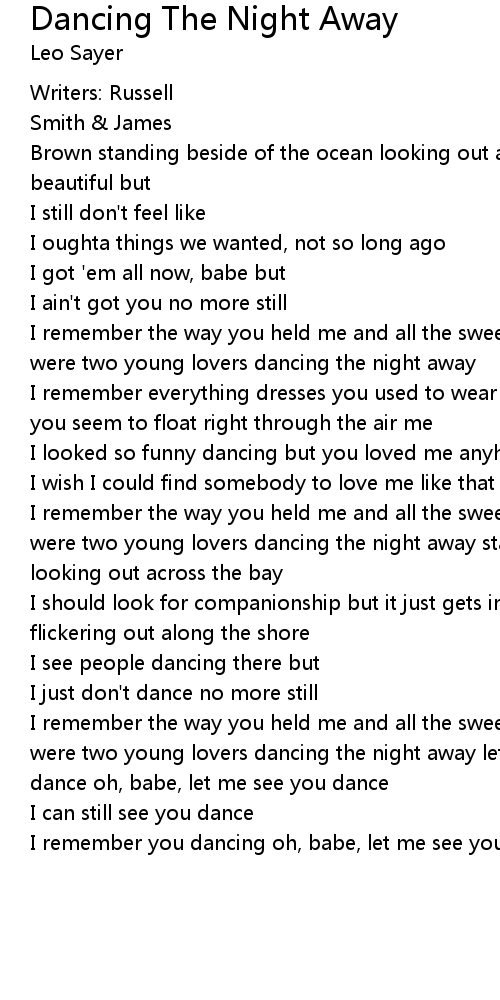 I remember the way you held me and all the sweet things you used to say when we were two young lovers dancing the night away |