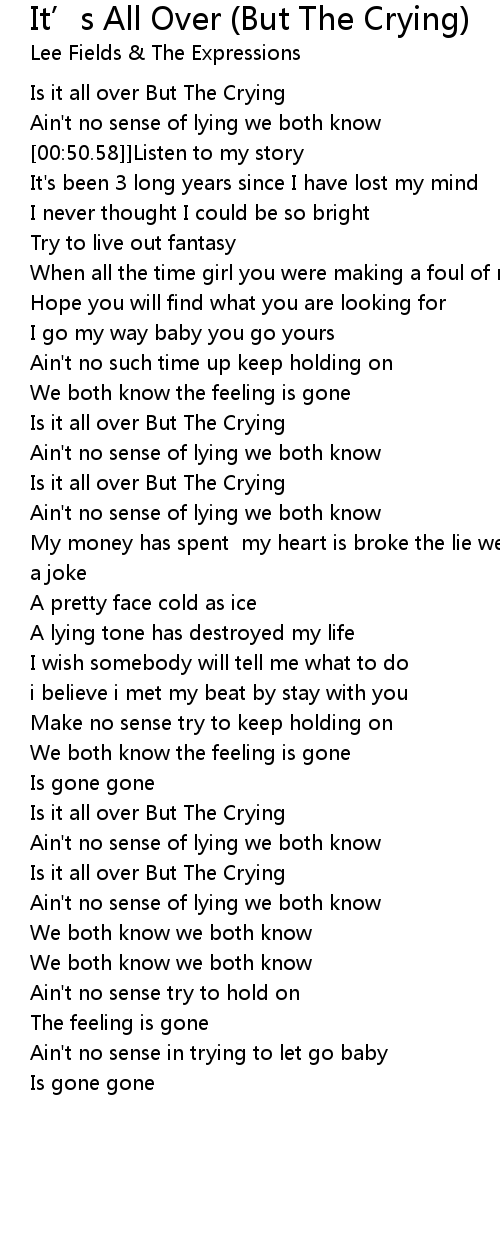 Is it all over But The Crying |