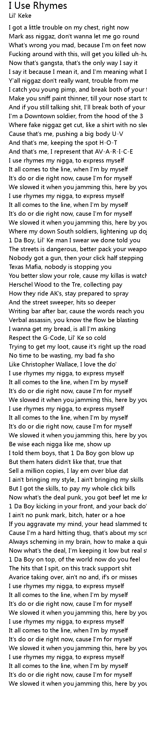 I use rhymes my nigga, to express myself |