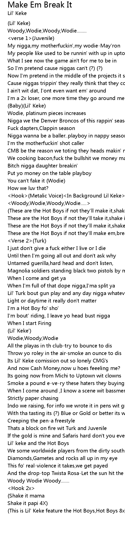 (This is Lil' Keke feature the Hot Boys,Hot Boys 8x) |