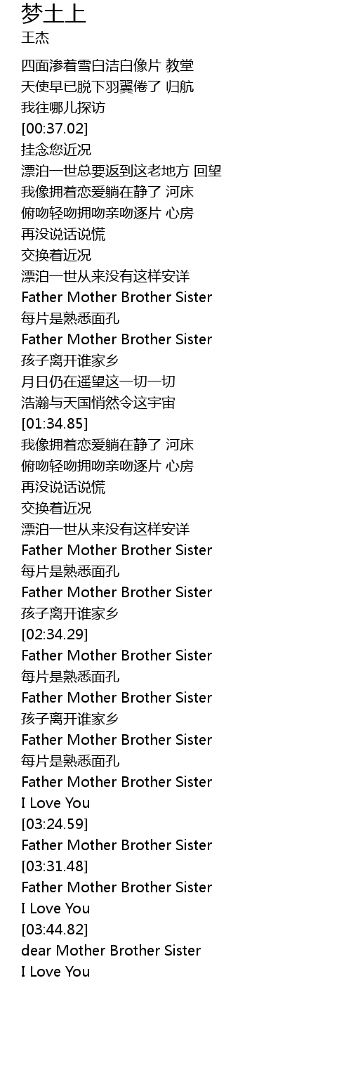 | [00:37.52] | guà niàn nín jìn kuàng |