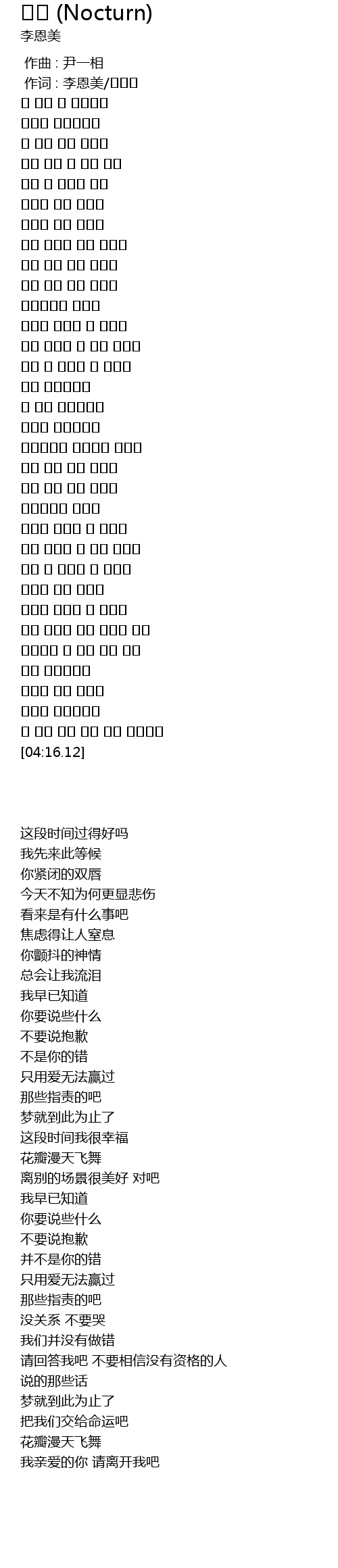 | [04:02.11] | 내 사랑 그대 이제 나를 떠나가요 |