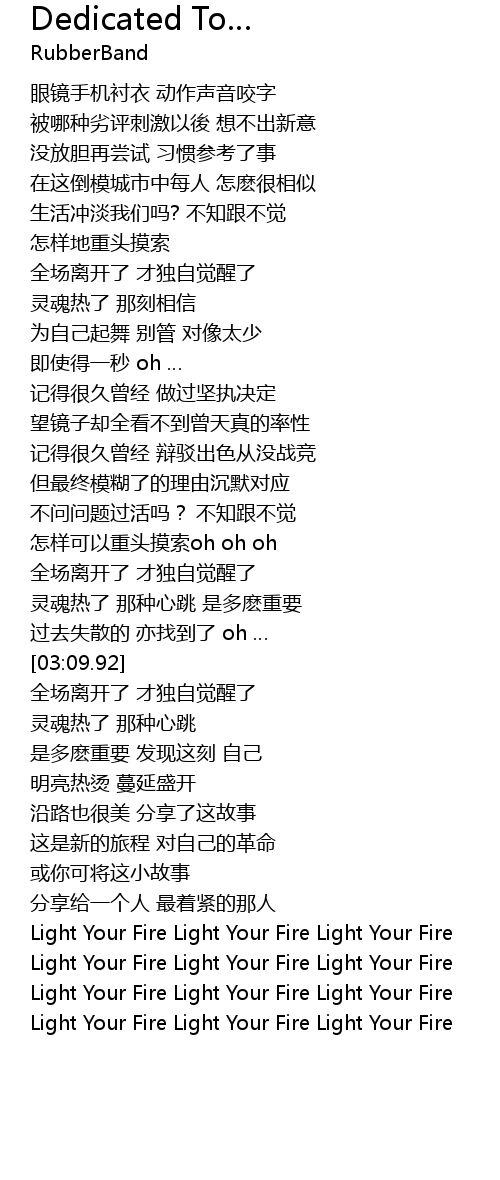 | [05:03.52] | Light Your Fire Light Your Fire Light Your Fire |
