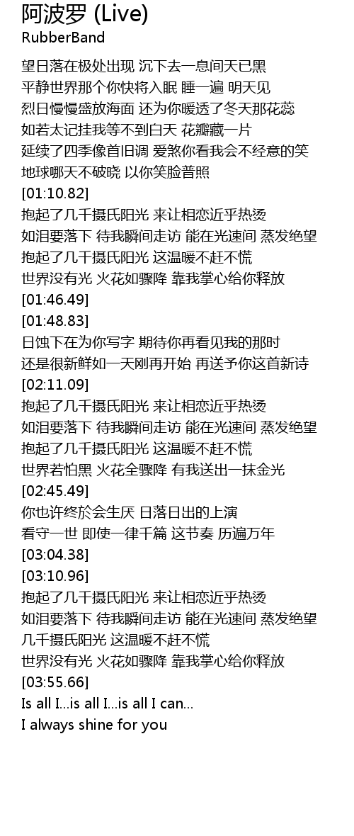 | [01:51.39] | 日蚀下在为你写字 期待你再看见我的那时 |