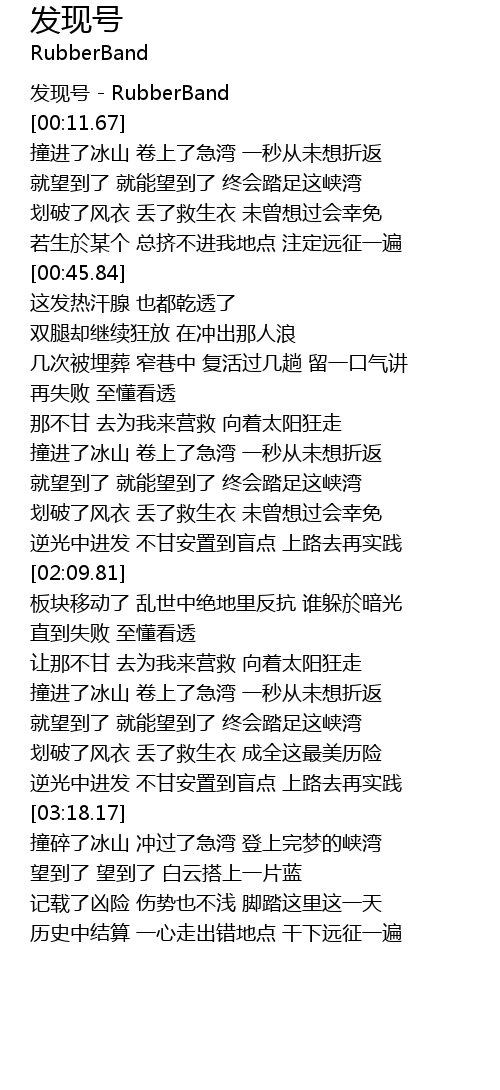 | [03:27.90] | 撞碎了冰山 冲过了急湾 登上完梦的峡湾 |