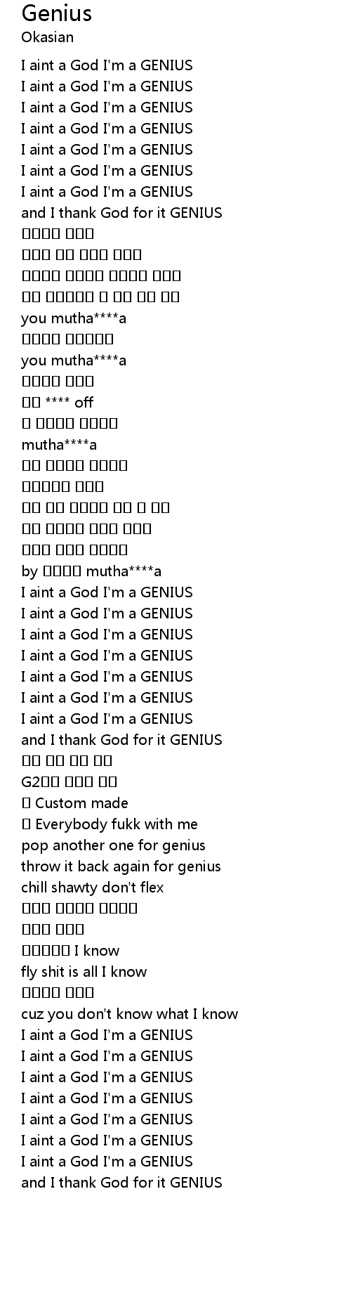 | [00:16.43] | I aint a God I' m a GENIUS |