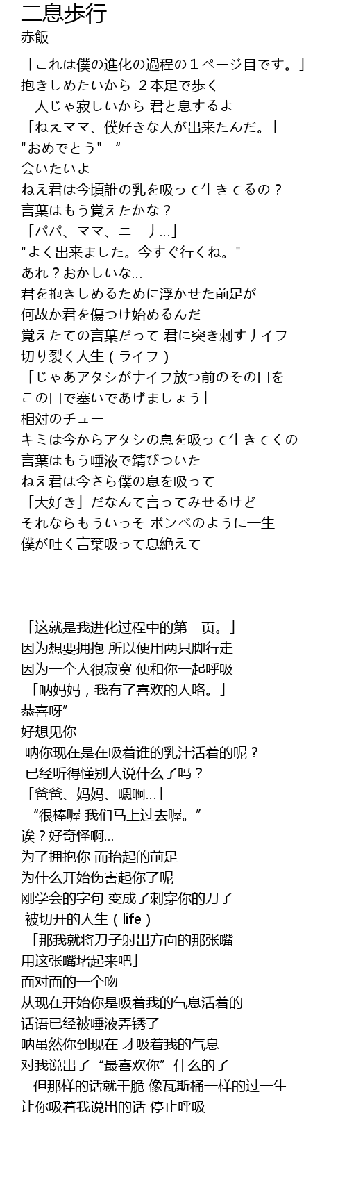 | [02:12.85] | キミは今からアタシの息を吸って生きてくの |