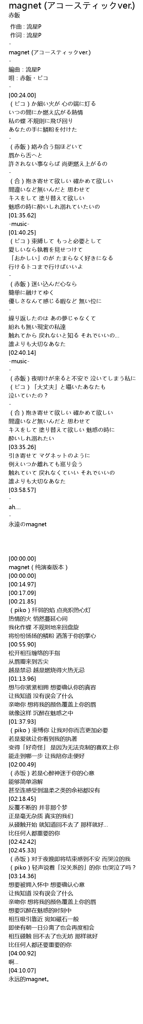 | [03:15.19] | (合)抱き寄せて欲しい 確かめて欲しい |