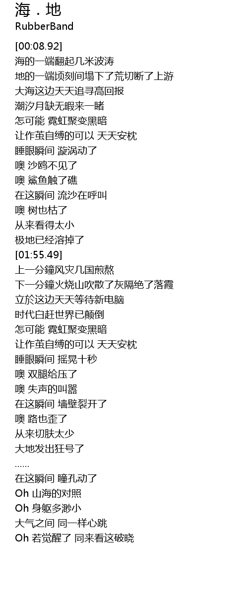 | [04:21.02] | Oh 山海的对照 |