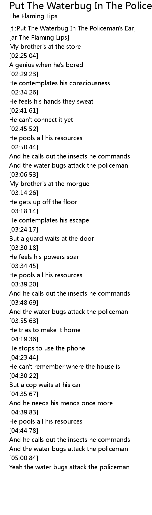 [ti:Put The Waterbug In The Policeman's Ear] |