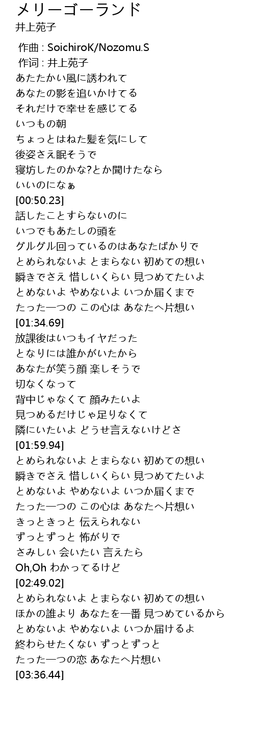 | [02:01.94] | とめられないよ とまらない 初めての想い |