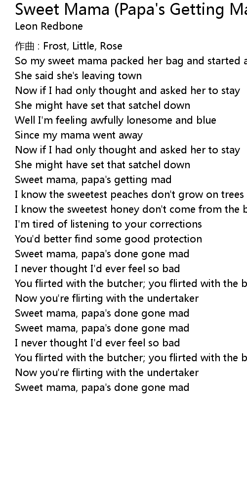 | Song | Sweet Mama (Papa's Getting Mad) |