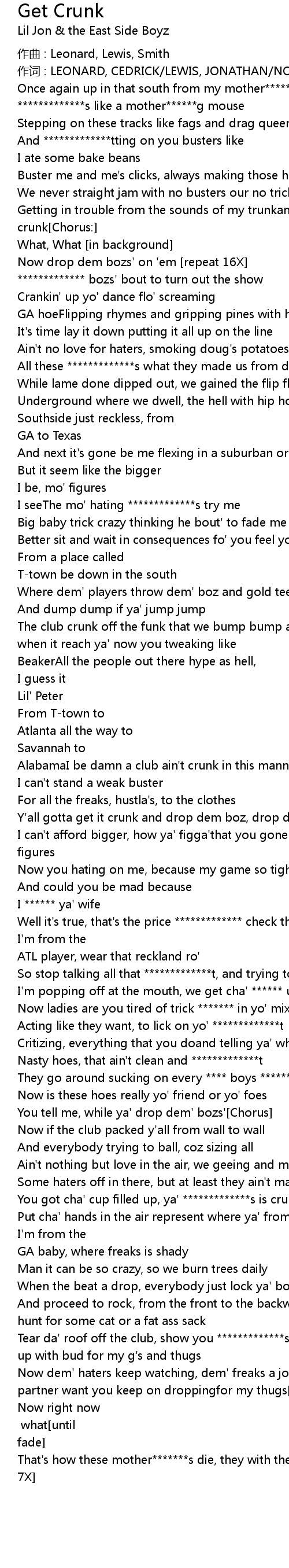 | Getting in trouble from the sounds of my trunkand keeping it crunk, keeping it crunk Chorus: | |