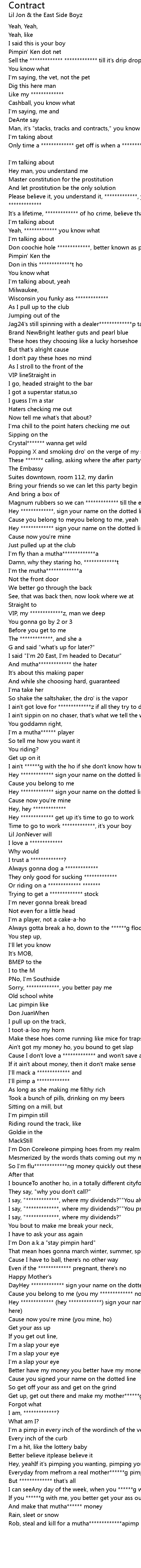 I say, "*************, where my dividends?""You always out of town" |
