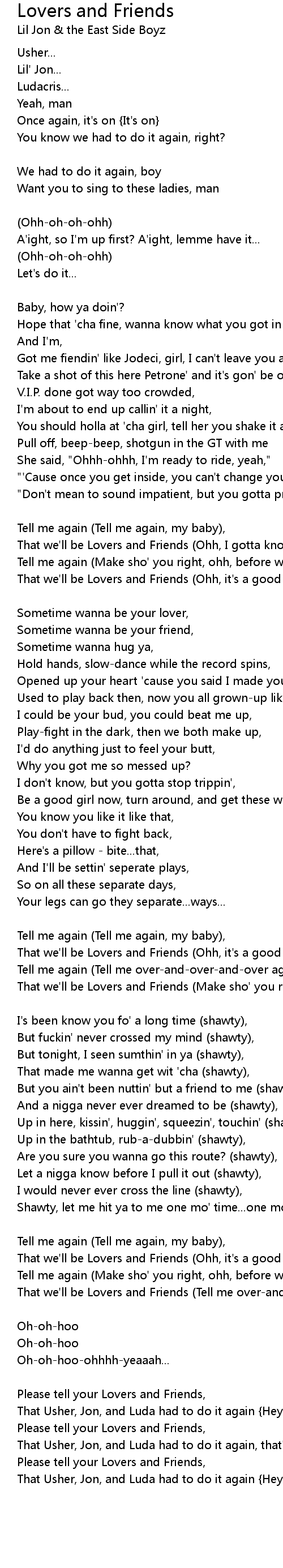 That we'll be Lovers and Friends (Ohh, I gotta know, baby, aw yeah) |