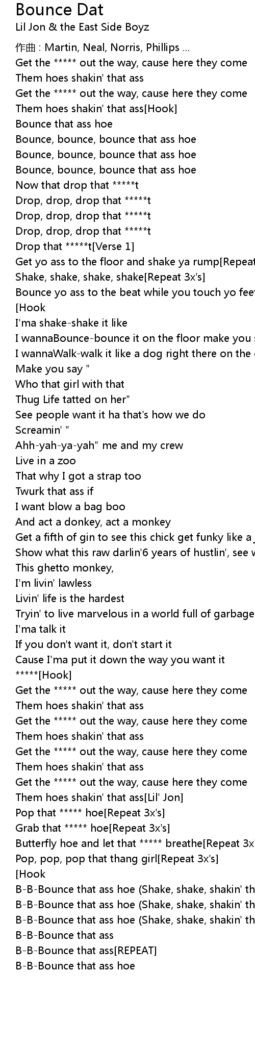 | BBBounce that ass hoe Shake, shake, shakin' that ass | |