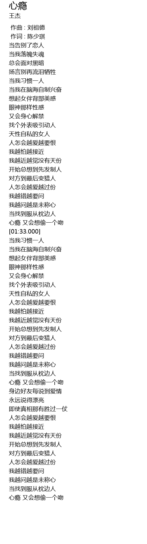 | [02:34.000] | 心瘾 又会想偷一个吻 |