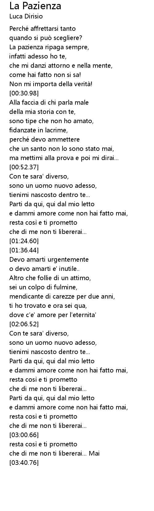 | [02:39.67] | Parti da qui, qui dal mio letto |