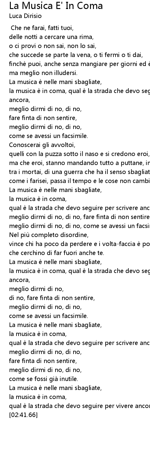 | [02:10.65] | la musica e in coma, |