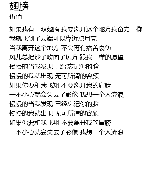 | [01:44.56] | rú guǒ nǐ yào hé wǒ fēi xiáng bú yào lí kāi wǒ de jiān bǎng |