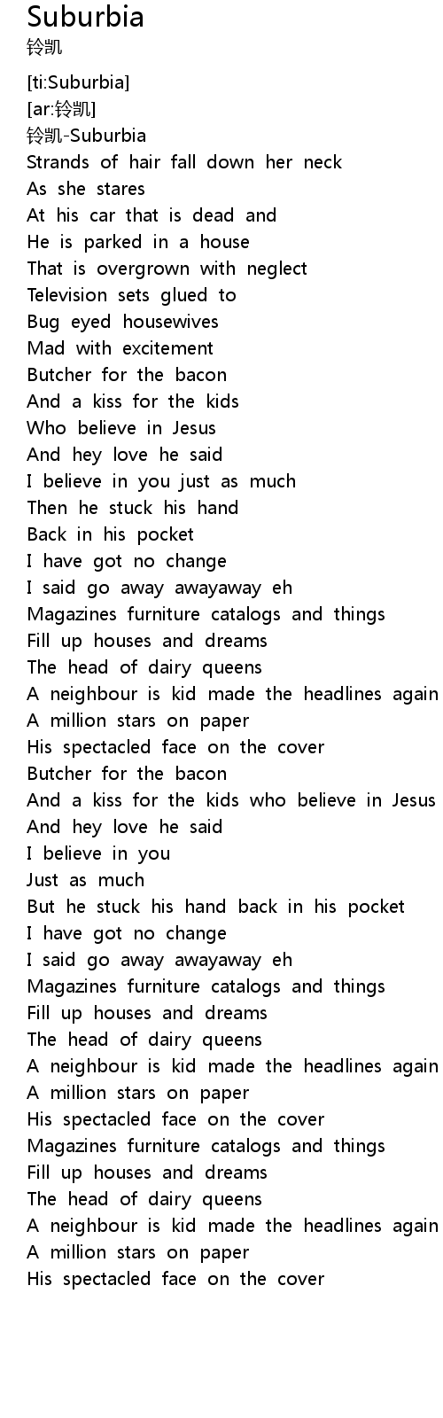 | [02:43.582] | A neighbour is kid made the headlines again |