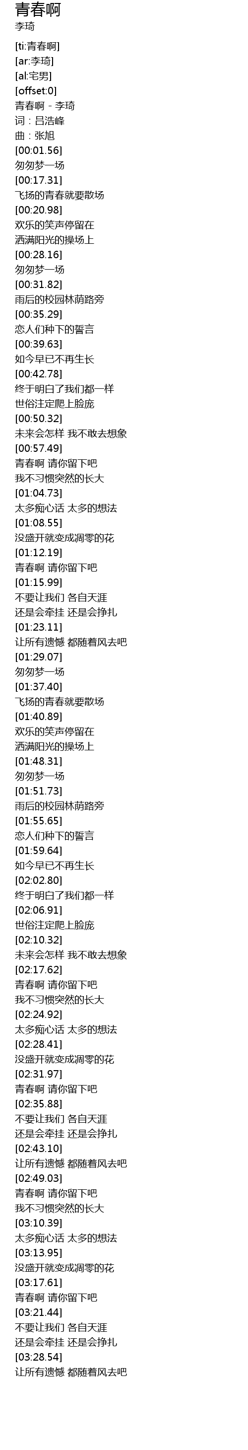 | [03:03.65] | qing chun a qing ni liu xia ba |