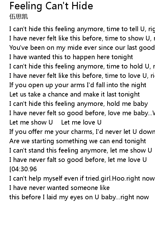 | [05:03.58][04:30.96] | I can' t hide this feeling inside me |