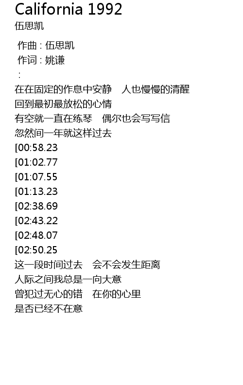 | [00:00.00] | 作曲 : 伍思凯 |