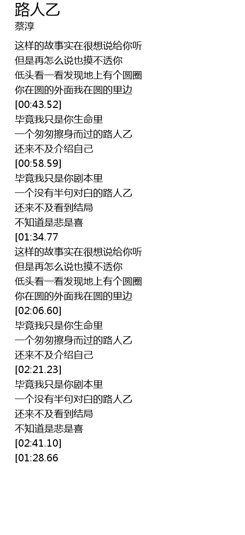 | [00:48.60] | 一个匆匆擦身而过的路人乙 |