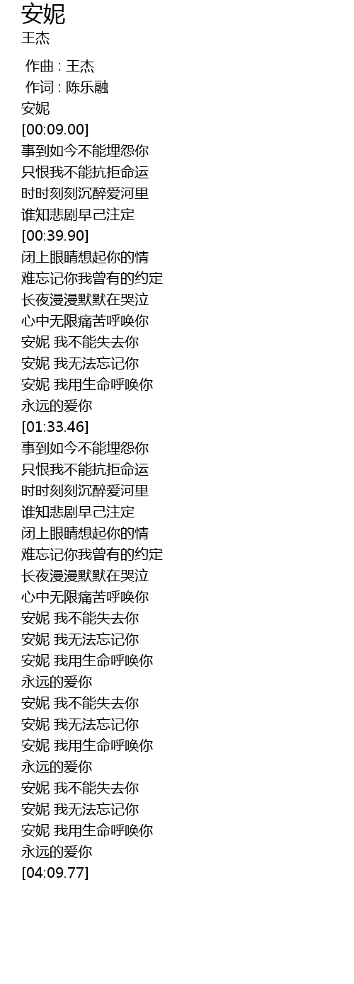 | [03:58.24] | 安妮 我用生命呼唤你 |