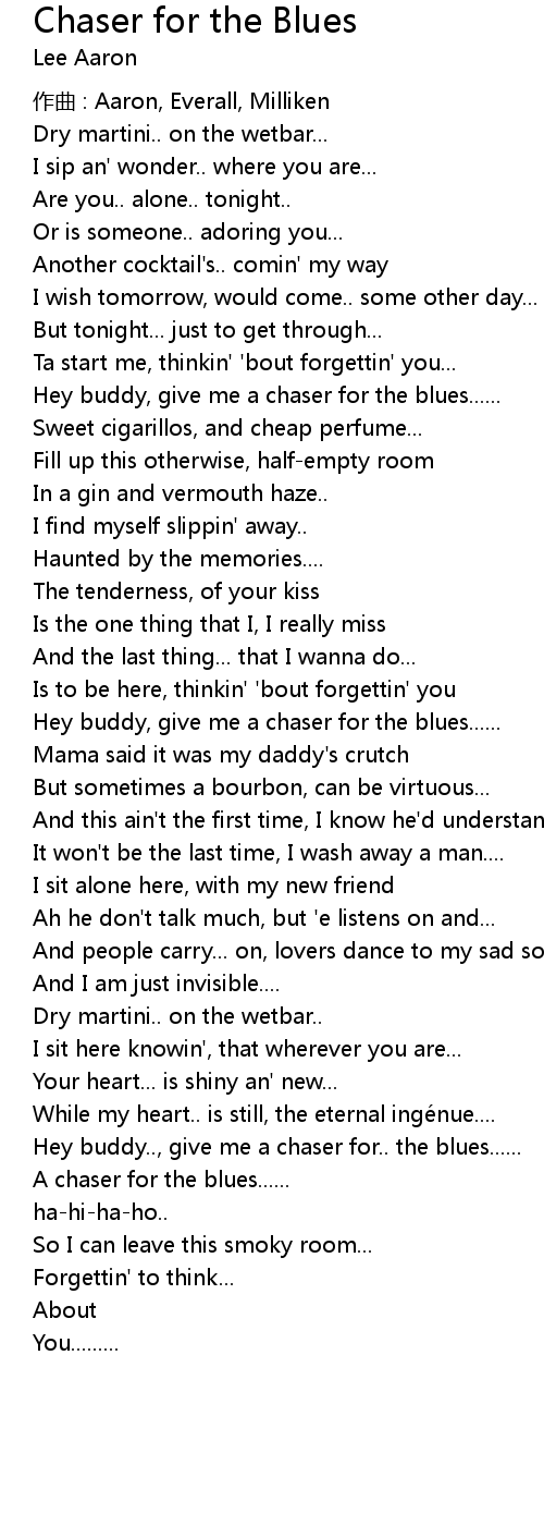 | Hey buddy.., give me a chaser for.. the blues...... | |