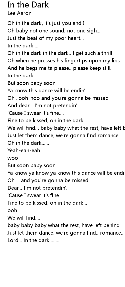 Oh in the dark in the dark.. I get such a thrill |