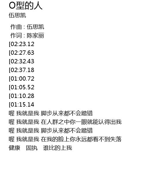 | [03:42.12][02:37.18][00:55.98] | O型的人 像我一样的多不多 |