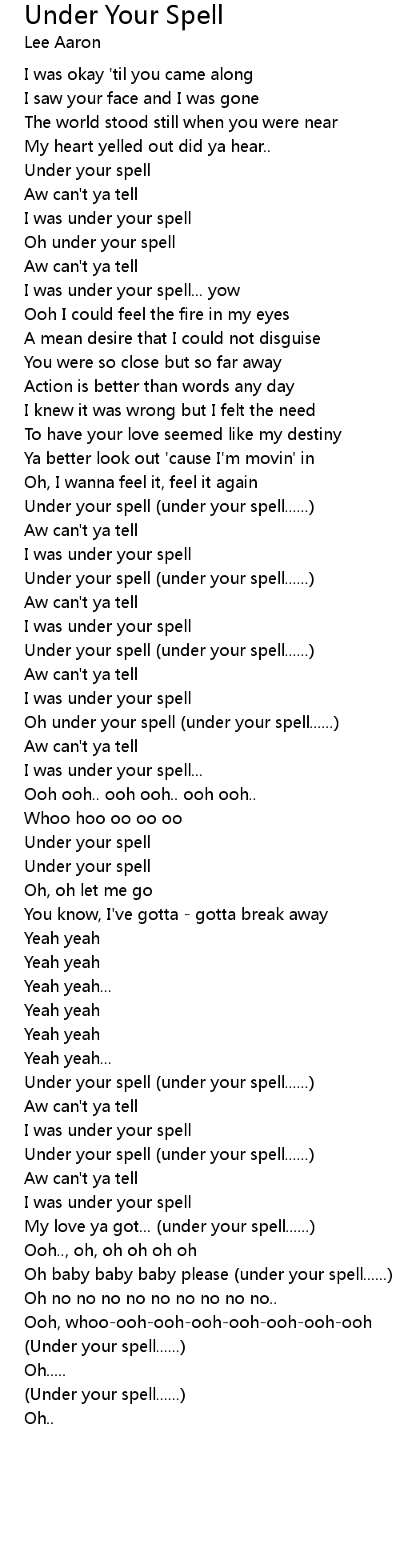 Oh under your spell |