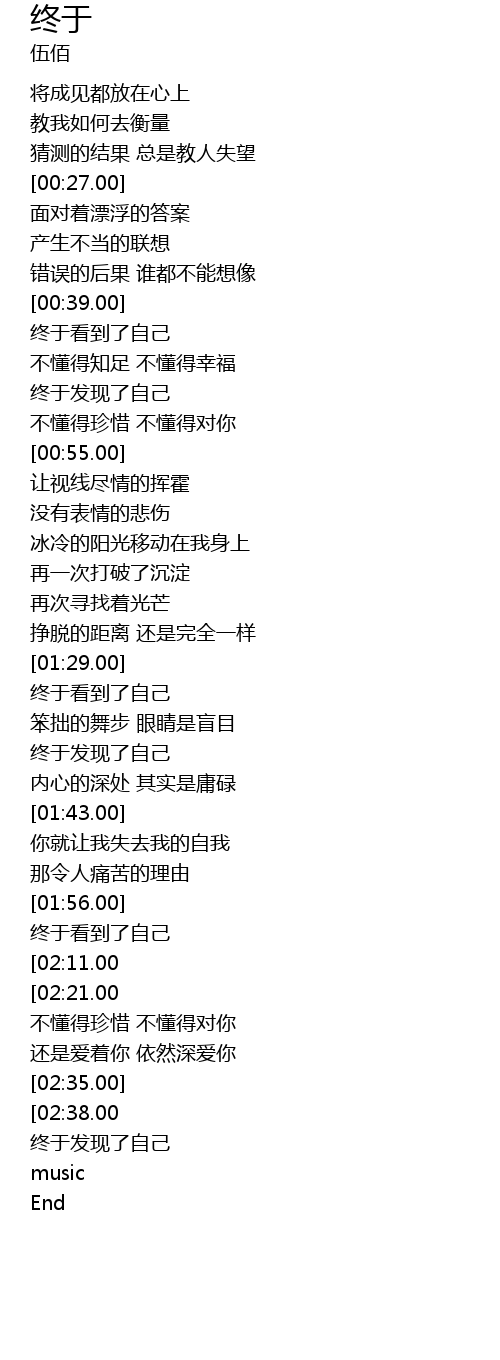 | [02:50.00][02:38.00] | 终于看到了自己 |