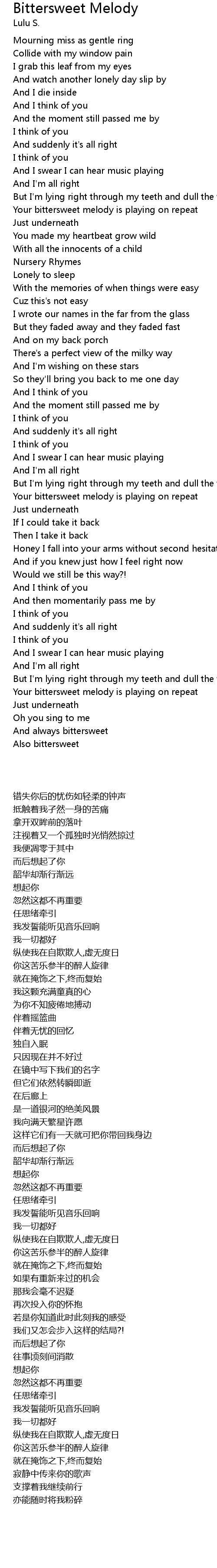 Your bittersweet melody is playing on repeat |