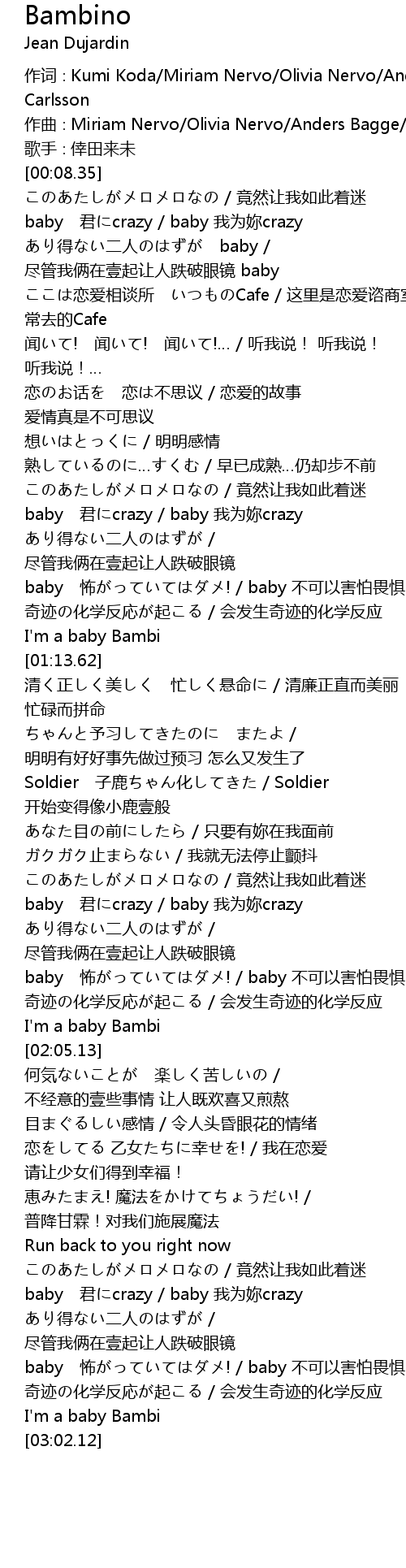 | [02:39.53] | baby 君にcrazy / baby 我为妳crazy |