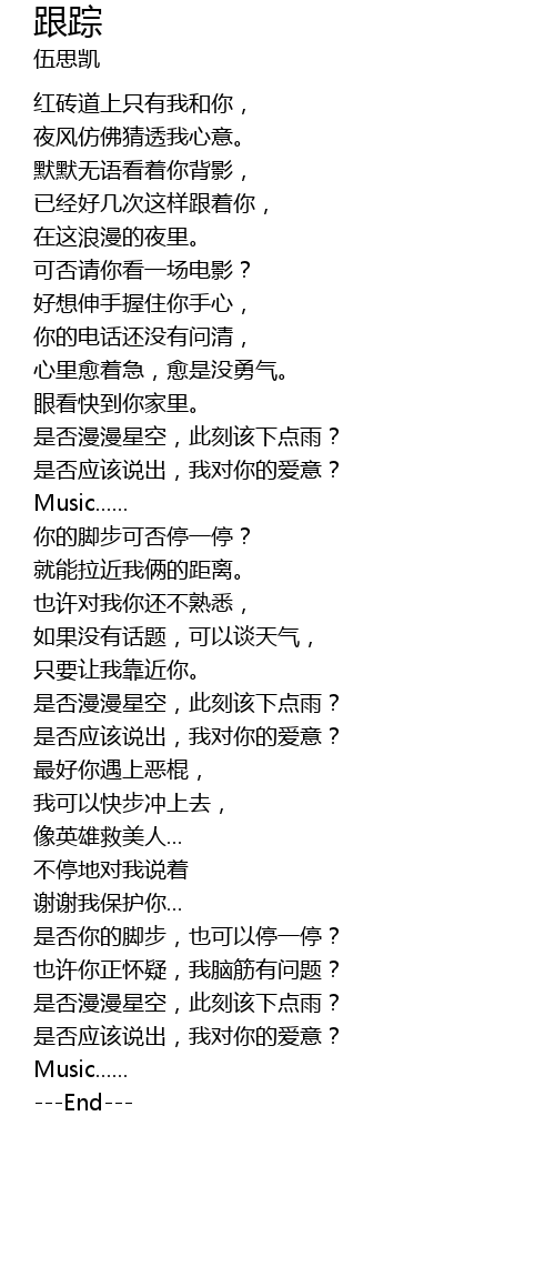 | [01:42.89] | 你的脚步可否停一停? |