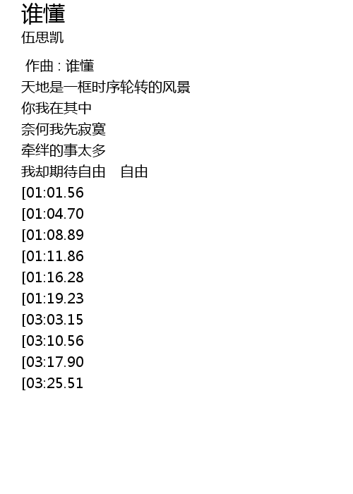 | [03:36.67][03:03.15][01:30.35] | 谁懂风 谁懂梦 |